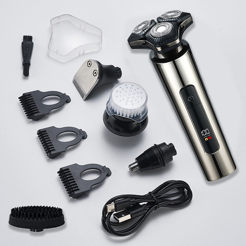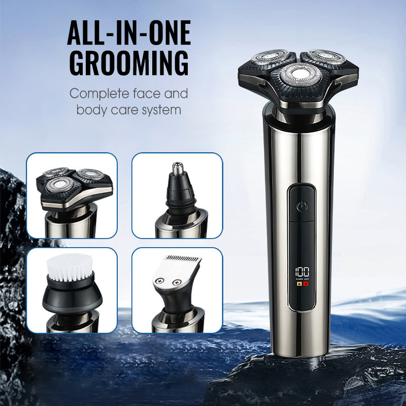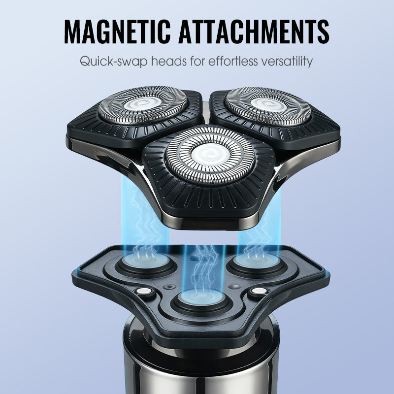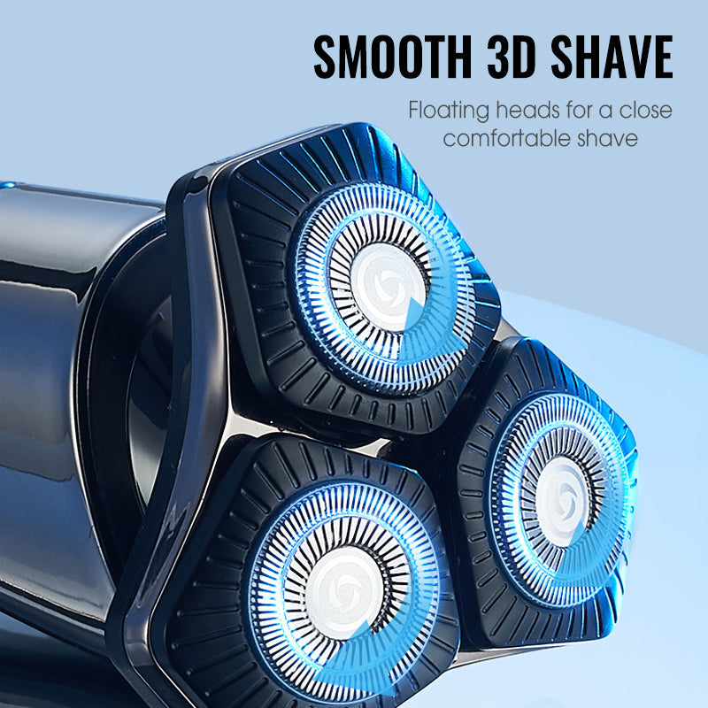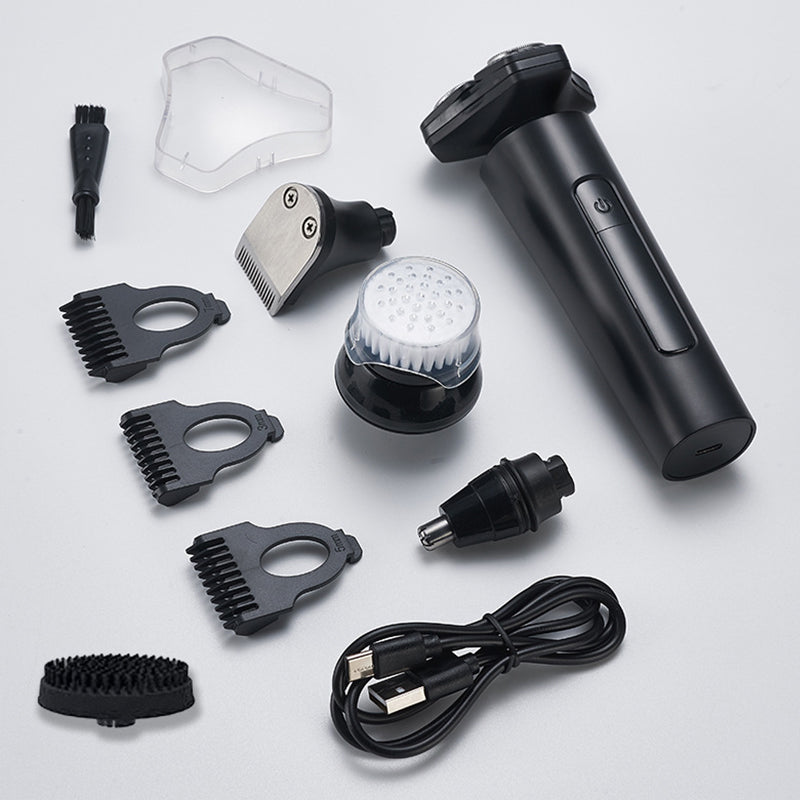 VERSATILE GROOMING SYSTEM - Enjoy a complete grooming solution with multiple interchangeable heads. Easily switch between the 3D floating rotary shaver, a precision hair trimmer with guide combs, an effective nose hair trimmer, and a gentle facial cleansing brush. Achieve a polished look with one integrated device.
