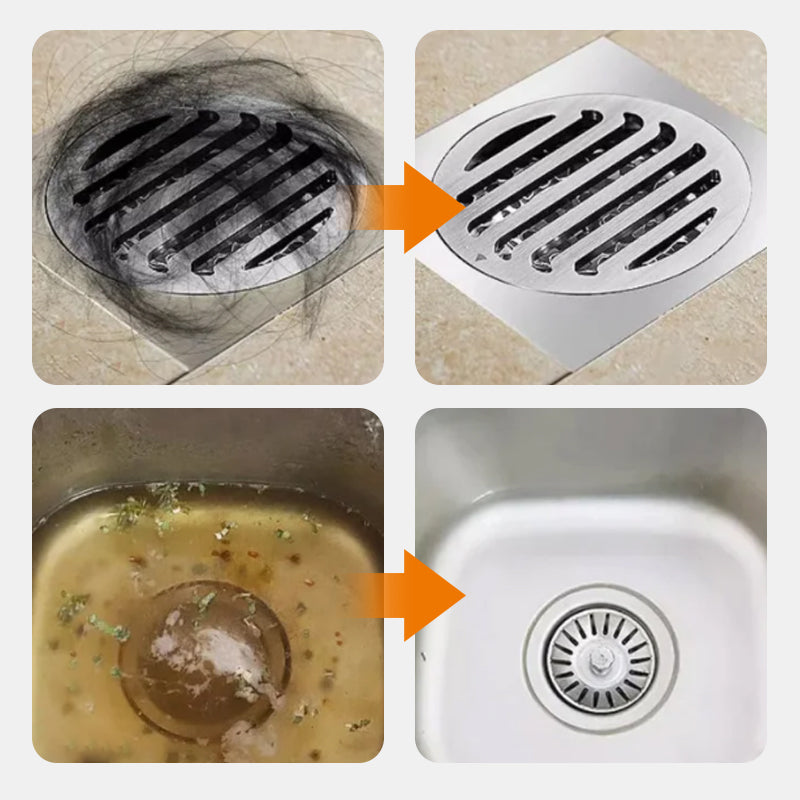 STRONG DREDGINGĀ - This Strong Pipeline Drain Clog Remover is formulated with concentrated particles that bring a strong dredging power to quickly and efficiently break down and decompose organic matter, oil, and other blockages. It also features the addition of biological enzyme components, which can decompose organic matter, oil, etc. in blocked pipelines. It is easy to use, just one bag of it can solve the blockage problem!