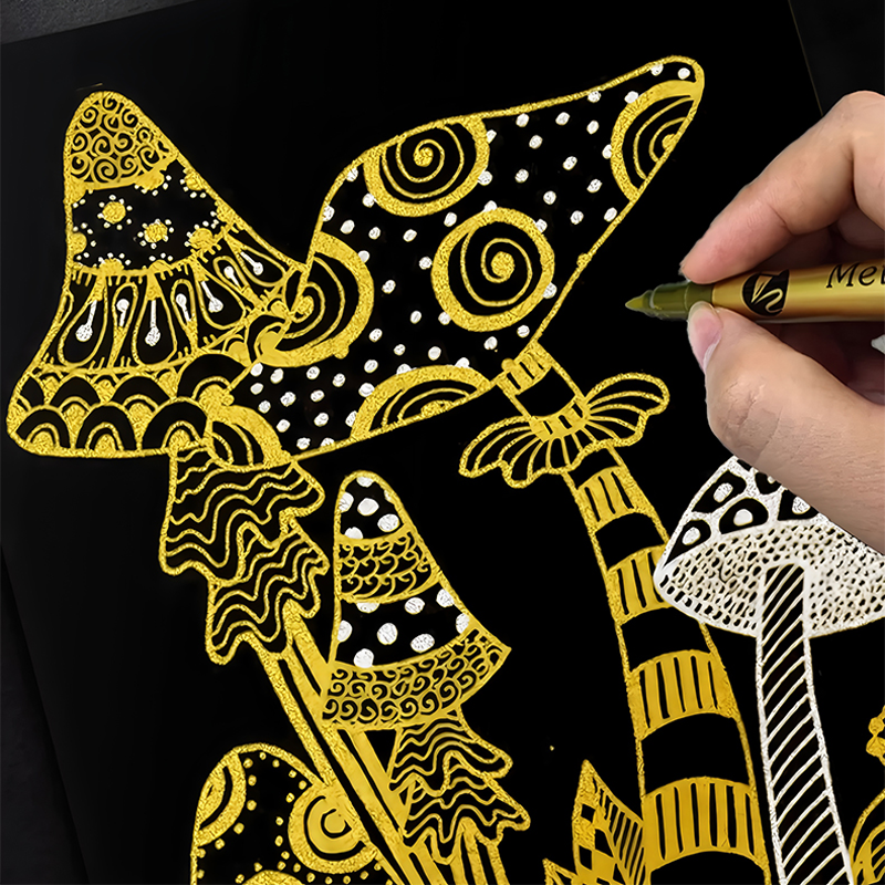 VIBRANT METALLIC SHEEN - Formulated with high-purity pigments, the ink provides exceptional opacity and a brilliant, reflective sheen. It creates a stunning metallic effect that stands out on both light and dark surfaces.