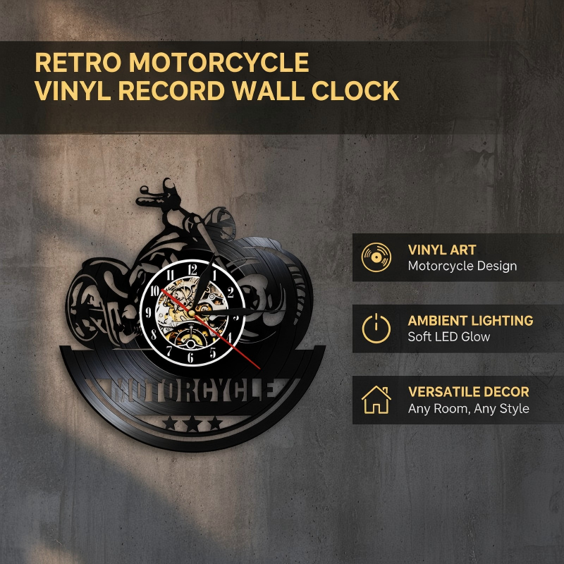 ⏳Limited-time 50% off⏰Retro Motorcycle Vinyl Record Wall Clock